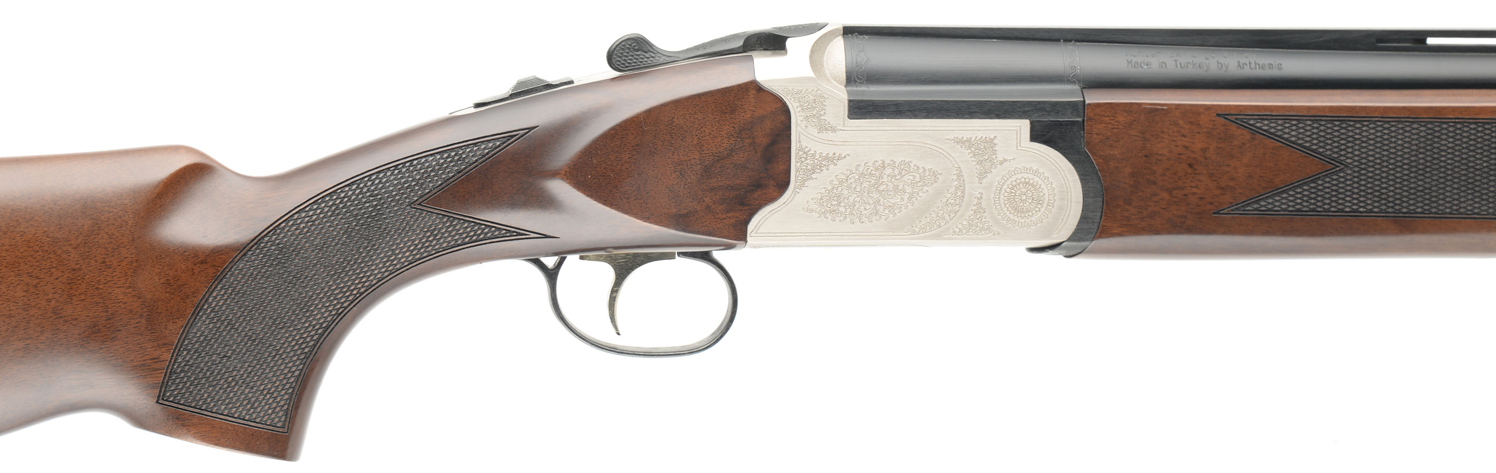 BOXED, Tristar, Hunter Ex, CAL; 12GA, MFG: Modern, SN: AR12008008, Break Action O/U Shotgun, Choke: IM/IM, 3'' Chamber, 26'' barrels. Standard factory markings., The original checkered flat pistol grip wood stock is excellent. The original metal blue finish on the barrel rates 99% overall. The lase engraved coin silver receiver is excellent. Bores are mint. The solid, matted rib holds a red fiber optic rail front sight. Stock has a ventilated black rubber recoil pad with a small missing piece at the toe. Mechanically excellent. Comes in factory box. FFL Req. - Value: 300 to 500
