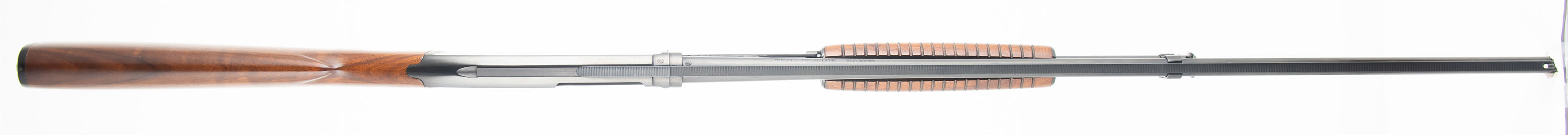 RARE CYLIDNER CHOKE, Winchester, Model 42, 410 GA., MFG. 1950, SN: 89626, Pump action, 3'' Chamber, Choke: CYL, 28'' donut post, Ventilated ribbed barrel. Only a couple of thousand CYL choke model 42's compared to the 164,800 made in total from 1933 to 63. The majority of the CYL guns had 26'' barrels rather than the 28'' this gun has. This shotgun was fully & professionally restored. The original flat pistol grip wood stocks are excellent, as professionally refinished & with virtually no handling marks. There appears to be no wood loss during the restoration process & the overall look & finish is excellent. The restored metal blue finish rates 99% overall. Stampings remain full. There are a few cleaned pit marks under the blue on the pump bar. Bore is excellent. The ventilated rib carries a single front bead. Proof stampings on receiver & barrel are to the left of the rib, which is correct. Buttstock carries a Winchester checkered plastic buttplate. An overall excellent restored condition 42, with a fantastic appearance. FFL or C&R Req. - Value: 2000 to 4000