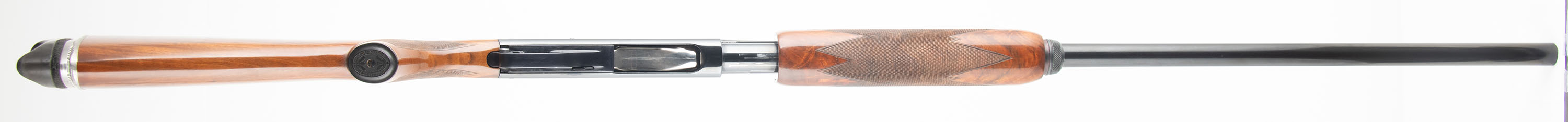 Remington, Model 870TC Wingmaster, CAL: 12GA, MFG: 1968, SN: 1163419V, Pump Action Shotgun, Choke: Marked Full (Measures Imp Mod), 2 3/4'' Or Shorter, 30'' Ventilated rib barrel. The original checkered & capped pistol grip deluxe wood stocks are excellent, with very few shallow dings, scratches & light wear to the excellent original finish. The original metal blue finish on the receiver & barrel rates 99%, with a bit more wear to the magazine tube. Bore is excellent. The serrated ventilated rib holds mid rib & front bead. The stock carries a Morgan Adjustable Recoil Pad Co. curved recoil pad. LOP is 14 3/4'' over pad. Mechanically excellent. FFL or C&R Req. - Value: 1000 to 1500