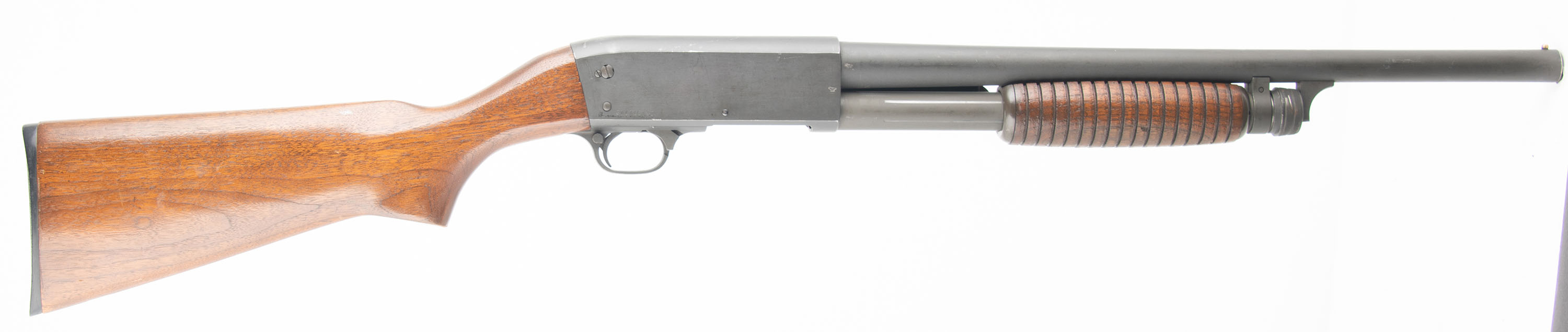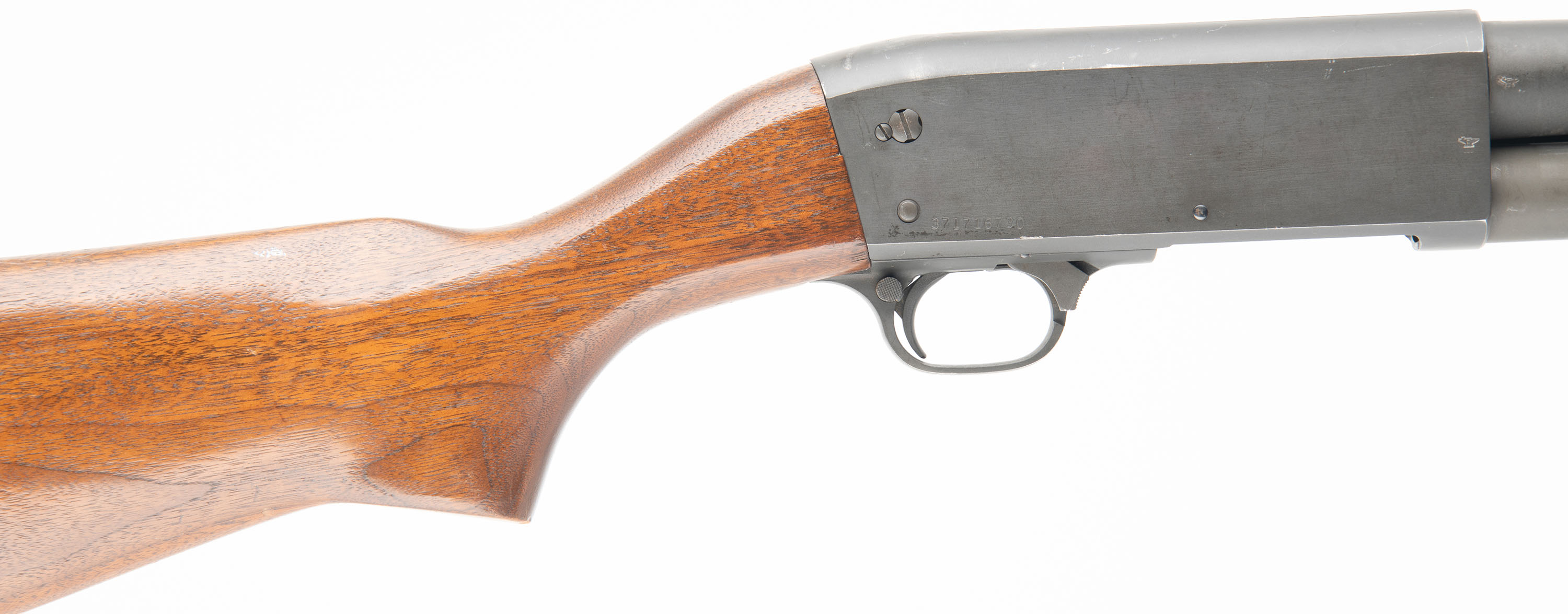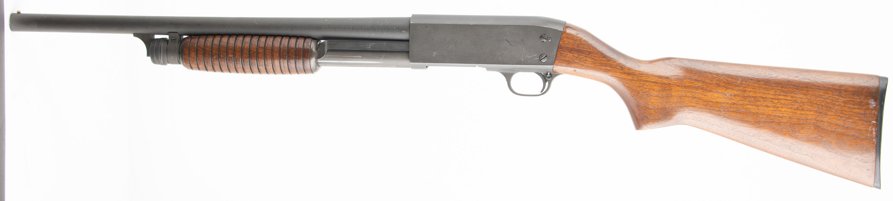 Ithaca, Model 37 Featherlight, CAL: 12 GA 2 3/4'', MFG: 1995, SN: 371716730, Pump Action Shotgun, Choke: Cyl, 18 1/8'' Barrel. The original flat pistol grip wood stocks are very good, with some small dings & scratches throughout. There are a couple of small edge chips on the bottom of the pistol grip. The finish is a combination of original finish with an added layer of finish. The parkerized metal finish is very good, with some minor scratches, dings and scuffs. The magazine tube shows expected use wear. Bore is very good. The barrel holds a front bead sight, the top of the receiver has serrations to reduce glare. The stock has a Ithaca checkered plastic buttplate. Mechanically solid, seems to function well. LOP is 14 1/8''. FFL Req. - Value: 300 to 600