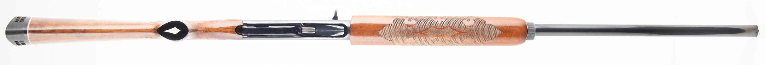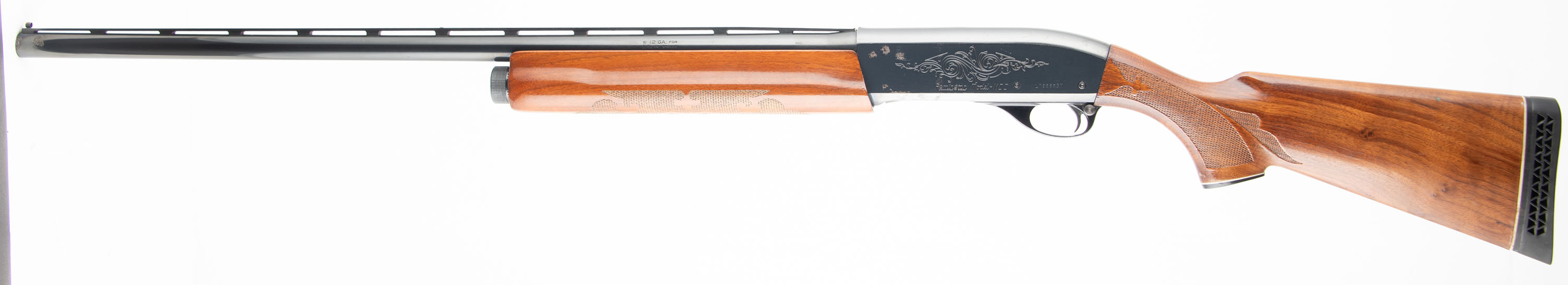 Remington, Model 1100 Magnum, CAL: 12GA, MFG: 1968?, SN: L795583M, Semi Auto Shotgun, Choke: MOD, 2 3/4'' Chamber, 27 3/4'' standard barrel. Standard factory markings on the barrel & receiver. The original press checkered, capped pistol grip stocks are excellent. There are only minor handling marks to the finish. The metal blue finish on the replaced barrel rates 97% & the receiver rates 90%. Bore is excellent, with intermittent spots of roughness. The ventilated rib holds a flattened mid rib bead & fiber optic front bead. Stock has a ventilated recoil pad. The receiver is rated for 3'' magnum loads, but the replaced barrel is for standard 2 3/4'' loads ONLY. FFL or C&R Req. - Value: 400 to 800