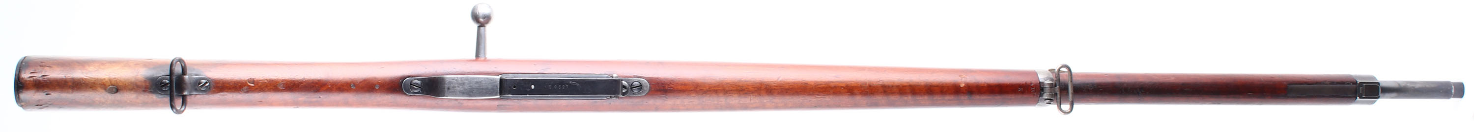 Deutsche Waffen-Und Munitionsfabriken (DWM), M1891 Argentino Mauser, Cal: 7.65x53mm Mauser, MFG: Late 1899, S/N: T 6665, Bolt action rifle, 29'' barrel. The straight wrist walnut stock is very good with minor nicks & dings from use/age. More small gouges ate the toe & light oil staining around the buttplate & rear sling base. A Mismatched S/N (K0050) is stamped into the right flat of the stock just in front of the magazine. Slightly worn acceptance roundel cartouches on right cheek of stock. There is one star over ''RA'' in a circle cartouche on the upper handguard, two more smaller cartouches on the bottom of the wrist, three ''AG'' in shield cartouches on the belly of the stock in front of the rear sling base, & another star over ''RA'' in a circle cartouche by the toe. The blued metal finish rates 90% on the barrel with spots of wear/thinning, & 25% on the receiver, mostly worn gun metal gray with blue in protected areas. The top of the receiver band has the faint remnants of the Argentine coat of arms. The left side of the receiver is marked with two proof stamps, ''MAUSER MODELO ARGENTINO 1891'', ''DEUTSCHE WAFFEN-UND'', ''MUNITIONSFABRIKEN.'', ''BERLIN''. The right side of the receiver band is stamped with the S/N. The barrel shank is marked with two proof stamps & the S/N ''M8250''. Other metal parts have small proofs. S/N mismatched bolt, barrel & magazine. The bolt has grind marks & is stiff when cycling, rifle should be looked at by a gunsmith before firing. The bore is excellent near MINT. Bright & mirrorlike with no visible wear. The barrel holds a barleycorn front sight with a flip-up ladder, V-notch rear sight marked 4 to 20. The stock carries a blued steel buttplate has wear, brown patina, & roughness/pitting scars under the finish. Rifle has both bottom sling loops. Rifle has no cleaning rod. Most Argentine Mauser have the crests ground off because it was a legal requirement to export them when the majority of them were imported. This requirement was gotten rid of later but since they imported the rifles in better condition first the ones in worse condition usually have them, & there are far fewer of them. With the problems with the bolt on this rifle it should be inspected by a gunsmith before firing, & is being SOLD AS IS with NO RETURNS ACCEPTED. FFL or C&R Req. - Value: 250 to 500
