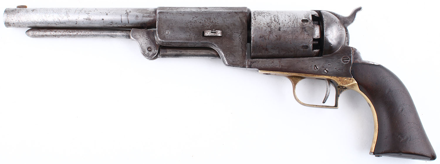 Only 1,100 of these guns were made, 1,000 for the military and 100 for commercial sale. The military ones were issued to 5 companies of Mounted Rifles, and can be identified by their factory unit marks for Companies A through E. Roughly half of them were delivered in time to see active use in the Mexican-American War, but all of them would see use for many years in the hands of the US military, the Texas Rangers, the Confederate military, and in civilian hands. The design would evolve into the Colt Dragoon revolvers and ultimately lead to the 1851 Navy and 1860 Army designs, arguably the most iconic muzzle loading revolvers ever made.