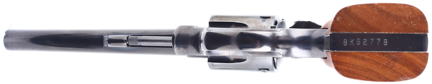 Smith & Wesson, Model 17-3, CAL: 22 LR. MFG: 1975. SN: 8K52778, Double Action Revolver. 6 barrel. The factory checkered wood grips with S&W medallions are in excellent condition with very light handling wear. The factory blued finish rates 99% with very light wear, the case hardening on the hammer and trigger is very good but slightly faded. Bore is excellent. Mechanically solid, the cylinder has some side to side & back & forth play. Target sights, serrated front ramp sight is integral to the barrel, windage and elevation adjustable rear sight is screwed to the top of the frame. FFL or C&R Req. - Value: 600 to 900