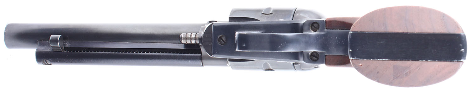 Ruger, Single Six, CAL: 22 LR. MFG: 1962-69. SN: 423478, Single Action Revolver. 5 1/2 barrel. The factory wood grips with Ruger medallions are in excellent condition with light handling wear. The bluing rates 94% with some wear, patina, and rust speckling. Most of the rust speckling is concentrated on the frame. Bore is very good, bright but slightly thinned. Mechanically very solid, the cylinder has some side to side & back & forth play. Blacked out target sights, the rear sight is set in a dovetail cut on the frame, the serrated front sight is integral to the barrel. FFL or C&R Req. - Value: 250 to 500