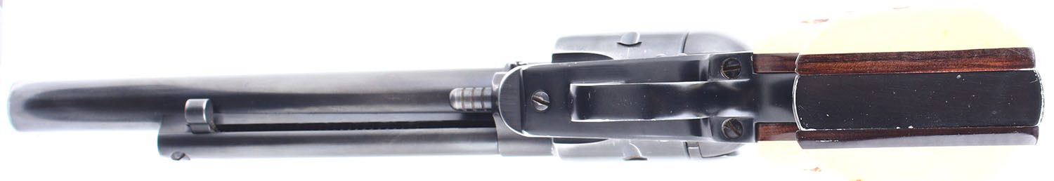 Ruger, Single Six, CAL: 22 WMR. MFG: 1960. SN: 313464, Single Action Revolver. 6 1/2 barrel. The faux stag grips are in excellent condition with some handling wear. The bluing rates 91% with light handling wear and some holster wear. The blue has fully worn to gun metal gray around some of the corners of the frame. Bore is excellent. Mechanically solid, the cylinder has some side to side & back & forth play. Blacked out target sights, the rear sight is set in a dovetail cut on the frame, the serrated front sight is integral to the barrel. FFL or C&R Req. - Value: 250 to 500