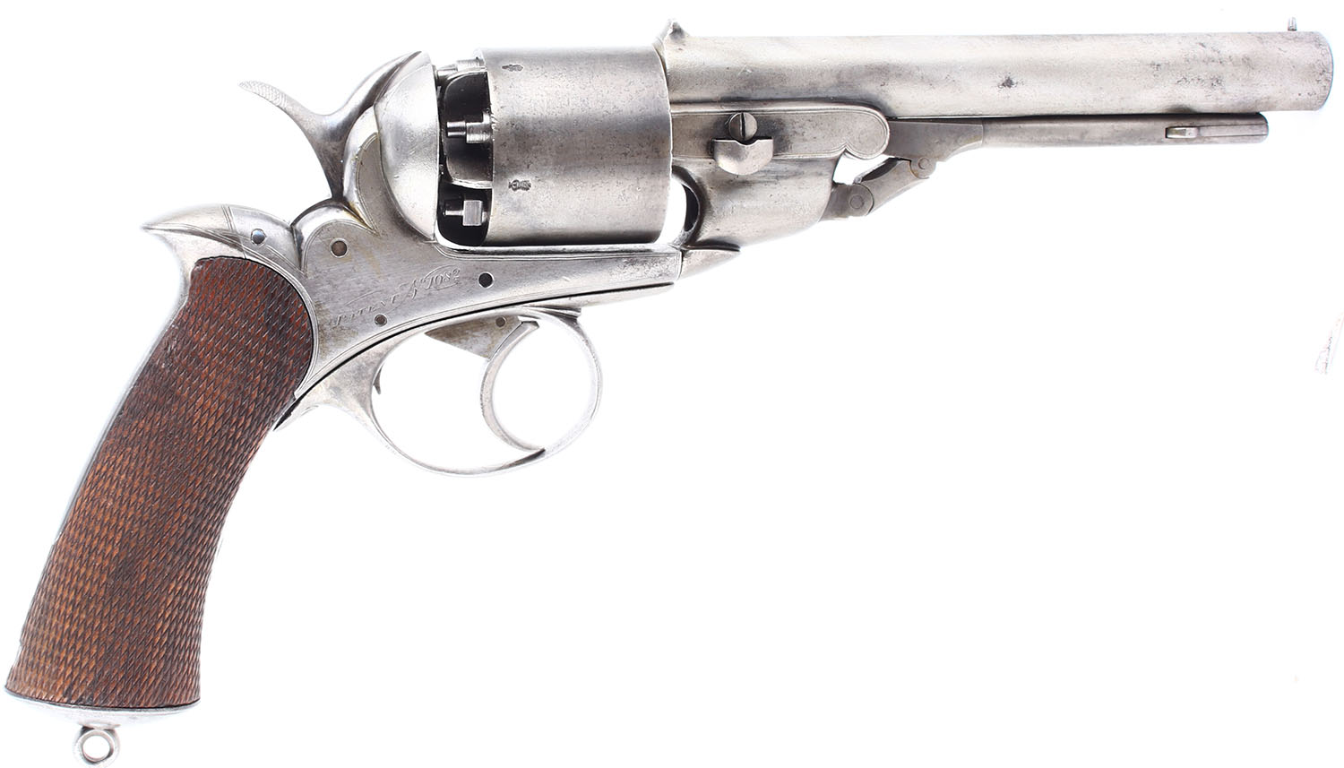 Pryse & Cashmore, Model 1855 ''George H. Daw 57 Threadneedle'', CAL: 54 Bore (.457 Caliber), MFG: Circa 1860's. SN: 1082, Double/Single Action Percussion Revolver, 6'' barrel.