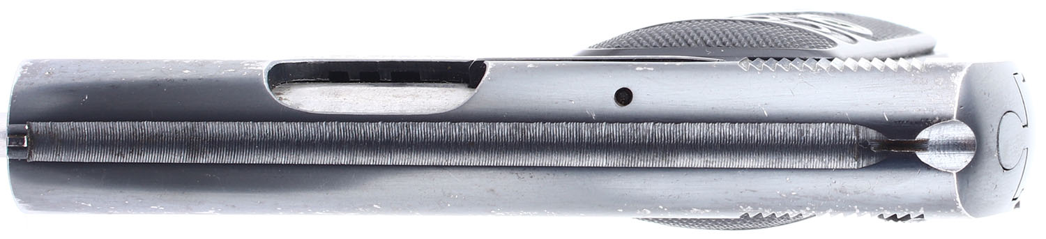 Colt, 1908 Hammerless Vest Pocket, CAL: 25 ACP, MFG: 1919, SN: 210593, Semi Auto Pistol. 2'' barrel. Factory polymer grips are in excellent condition with slight handling wear. The blued finish on the frame rates 97%, the blued finish on the slide rate 90%. Bore is very good, slightly darkened with no substantial pitting. Mechanically solid with little to no side to side play in the slide. Rudimentary sights are cut into the trough on the top of the slide. Comes with one magazine. FFL Req. - Value: 300 to 600
