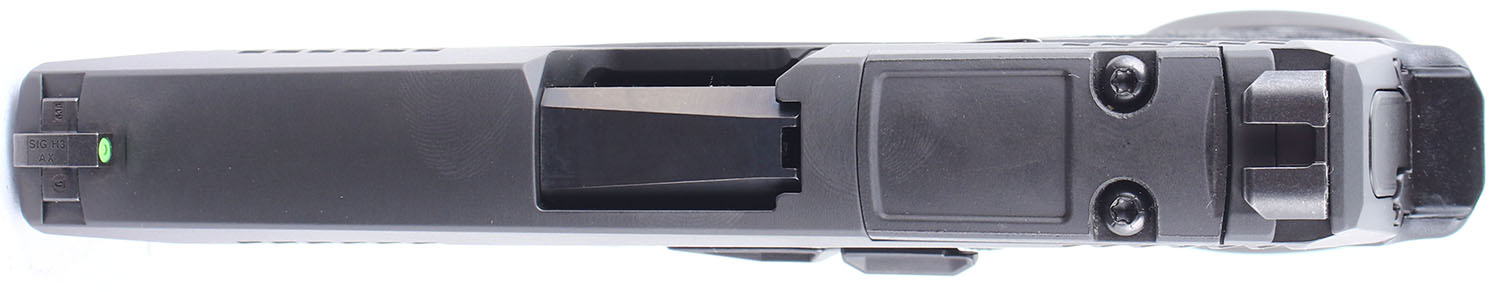 CASED Sig Sauer, P365 X Macro Tac Ops, CAL: 9x19mm, MFG: Modern, SN: 66G311545, Semi Auto Pistol. 3 1/2'' barrel. The checkered polymer grip frame is in excellent condition. The finish on the slide rates 99% and has very little handling wear. Bore is excellent. Mechanically solid, like new. 3 dot day night combat sights, the front and rear sights are set in dovetail cuts on the slide, the slide optics ready. Gun shop display model, comes in the factory hard plastic case with four 17 round magazines, a rugger grip band (for display), two extra back straps (for a total of three, one small, one medium, and one large), a lock, a Sig Sauer sticker, an owners manual, and other related paperwork. FFL Req. - Value: 450 to 750
