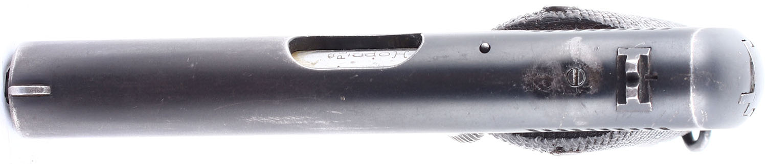 Juan Esperanza Y Pedro Unceta (Spain), Astra Mod 15 Ruby, CAL: 32 ACP, MFG: 1915, SN: NONE, Semi Auto Pistol. 3 3/8 barrel. The checkered wood grips are in good condition with substantial handling wear, scratches and dings but are intact and solid. The frame and slide rates 82% and has some handling wear and patina mostly concentrated on the trigger and front of the grip. Bore is very good, has darkened and has light roughness throughout with more substantial roughness near the muzzle. Mechanically solid. Blacked out sights, rear sight is set in a dovetail cut on the slide, front sight is integral to the slide. Comes with a magazine. FFL or C&R Req. - Value: 300 to 600