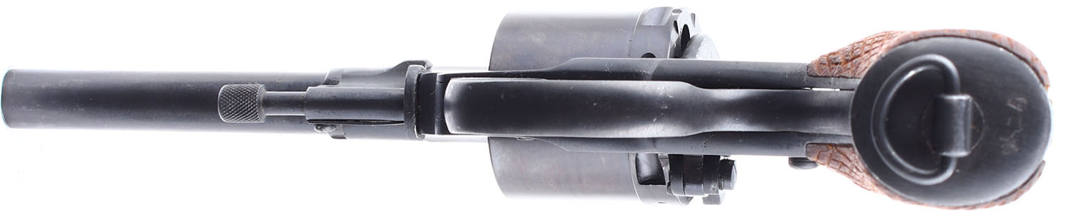 Tula, M1895 Nagant, CAL: 7.62x38R, MFG: 1918, SN: AB781 (import SN:189525956), Double Action Revolver. 4 1/2 barrel. The wood grips are very good, with some handling wear. The bluing on the frame rates 99%. Bore is excellent. Mechanically solid. Rear sight is integral to the frame, blade front sight is set in a dovetail cut on the barrel. Comes with a correct M1895 holster. FFL or C&R Req. - Value: 400 to 600
