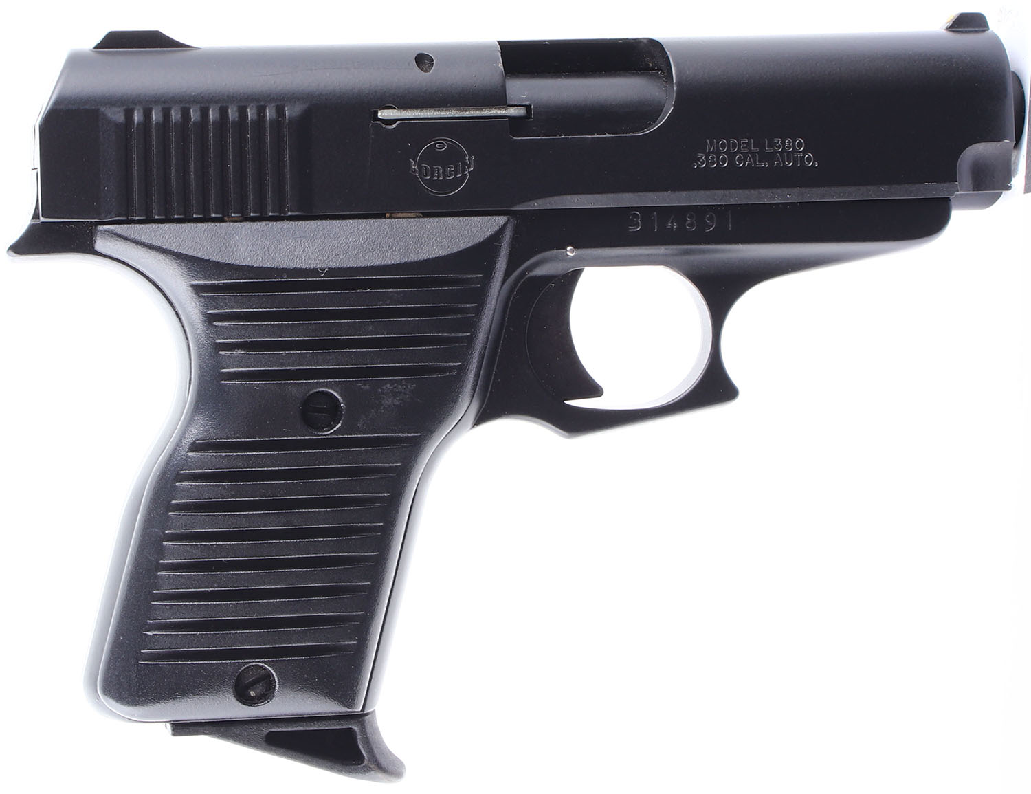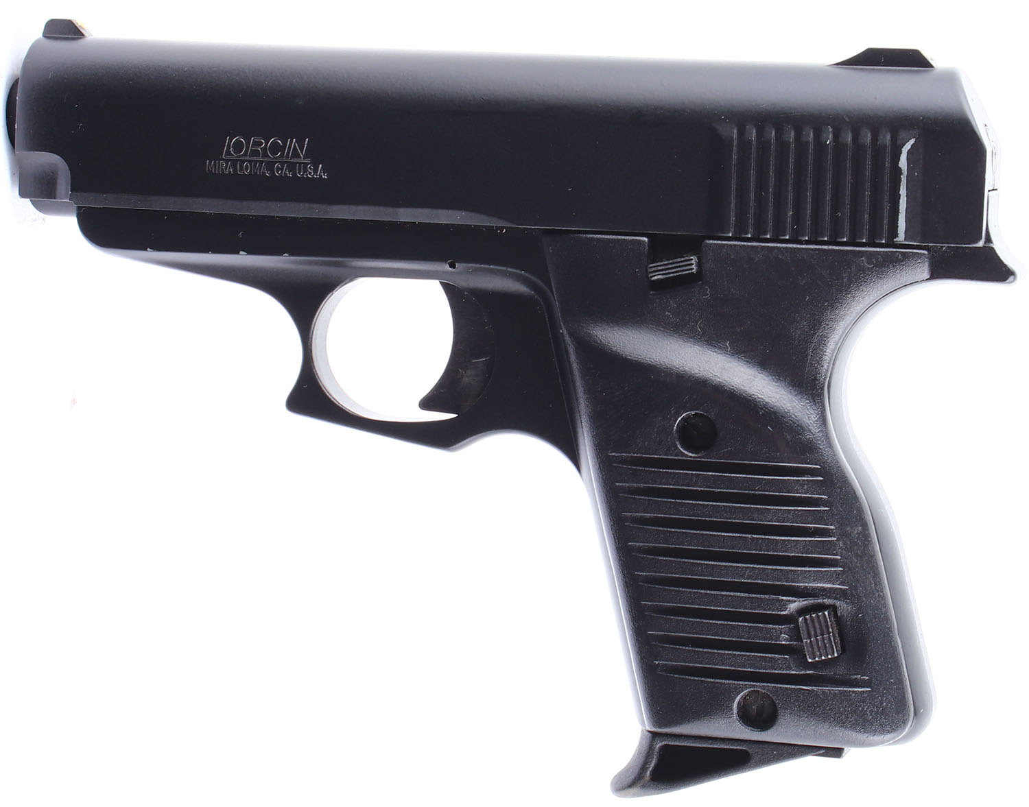 Lorcin (Mira Loma), L380, CAL: 380 ACP, MFG: Modern, SN: 314891, Semi Auto Pistol. 3 1/2'' barrel. The black polymer grips are in excellent condition. The black finish on the slide & frame is like new & rates 99%. Bore is good. Mechanically solid. 3 dot white front & rear iron sights are integral to the slide. Detachable mag. FFL Req. - Value: 50 to 100