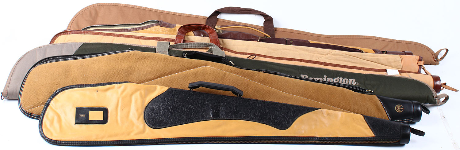 | Lot of (7) Canvas & naugahyde zipping gun cases. Grade: Excelle...