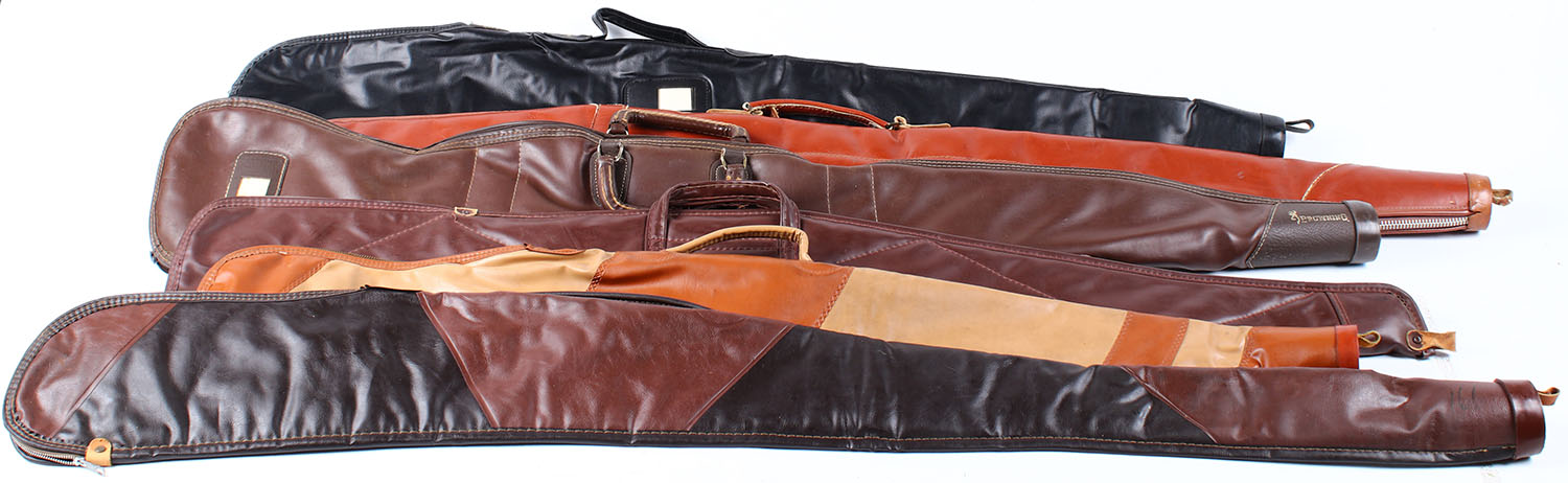 Lot of (6) Naugahyde zipping gun cases. One Browning. Grade: Excellent - Value: 30 to 75