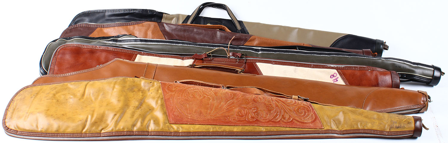 Lot of (6) Naugahyde zipping gun cases. Grade: Excellent - Value: 30 to 75