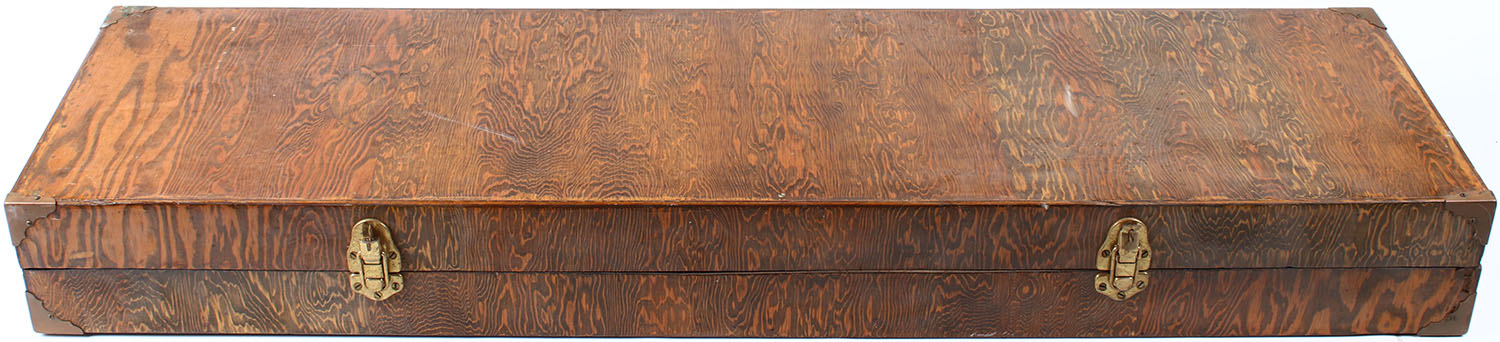 48 1/2'' 13'' x 5 1/2'' Wood display / travel case, brass latches & corners, no padding, full piano hinge. Grade: Very Good - Value: 10 to 40