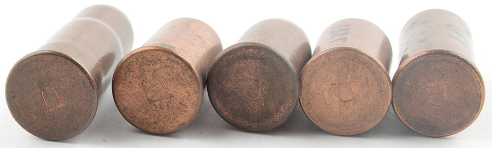 Lot of 5 = 56-50 Spencer, all impressed U, blanks all different mouth crimps and wad depths. Grade: Excellent - Value: 30 to 80