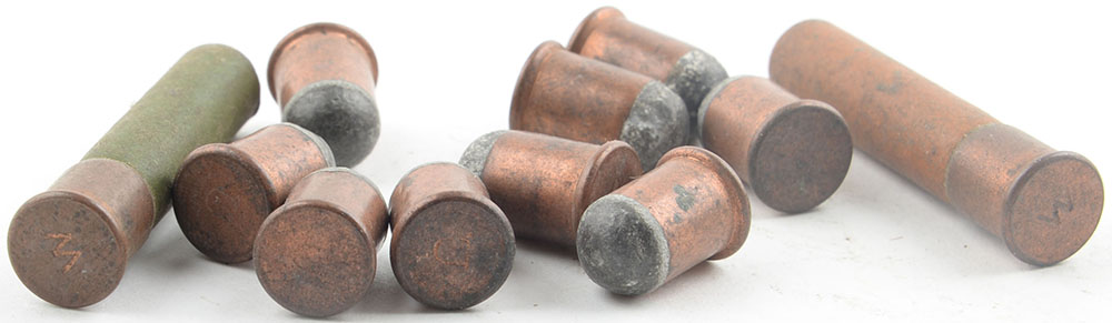 Lot of 11, 9mm Flobert cartridges. (2) Long Shot Cartridges by Winchester. (3) Ball Cartridges by Winchester., copper case. (6) Ball cartridges by UMC, copper case. Grade: Very Good - Value: 20 to 40