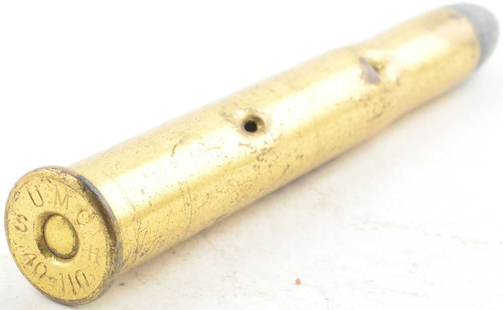 40-110 Winchester Express. HS:''U.M.C. H 40-110 S'', FN Lead. Board Dummy with two mounting holes. Grade: Excellent - Value: 50 to 100