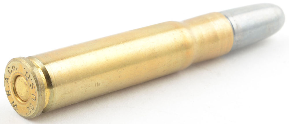 .35 Winchester Experimental Rimless. HS:''W.R.A. Co. .30 U.S..G.'', RN CN FMJ. This cartridge is believed to have been made in South Africa for collectors who wished to have an example of this rare cartridge but are unable to obtain one. This one has a very small ''R'' on side of case. Grade: Excellent - Value: 20 to 40
