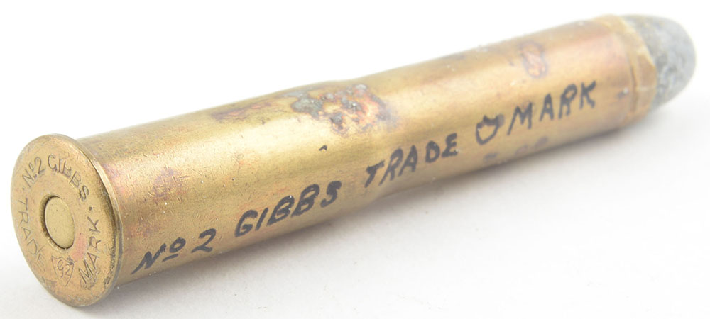 ..461 Gibbs #2 (2.75'' case). HS:''No 2 Gibbs Trade symbol Mark'' FN PP Lead with small hollowpoint. Grade: Very Good - Value: 30 to 60