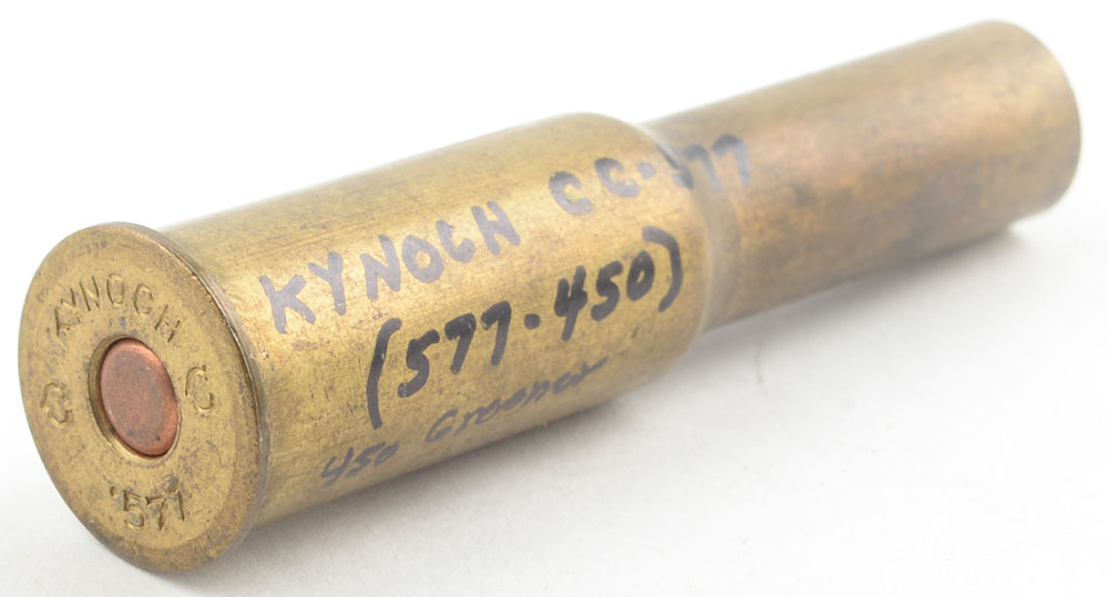 577/450 Greener. HS:''KYNOCH C 577 C'', Case Only. Long Neck Multi-ball case. See Fleming pg 123. Grade: Excellent - Value: 20 to 60