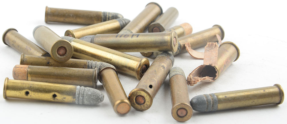 Lot of 12, 32 Extra Long Ballard & 6 = 38 Extra Long Ballard, LD, wood & paper sabot shot, rolled crimp shot, h/s's WRACO, UMC, REM-UMC. Grade: Excellent - Value: 60 to 120