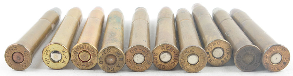 Lot of 10. 32-40. (5) by REM-UMC. (3) by Winchester. (1) by Peters. (1) by Dominion. Various bullet loadings. Grade Very Good - Value: 20 to 40