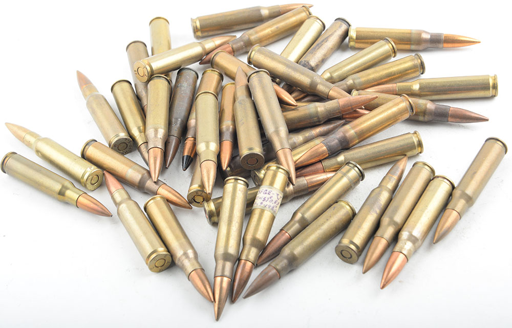Lot of 50. 7.62x51mm ''NATO''. A mix of military headstamped ammunition. Mostly foreign and mostly ball. See Photo. Grade Very Good. - Value: 30 to 60