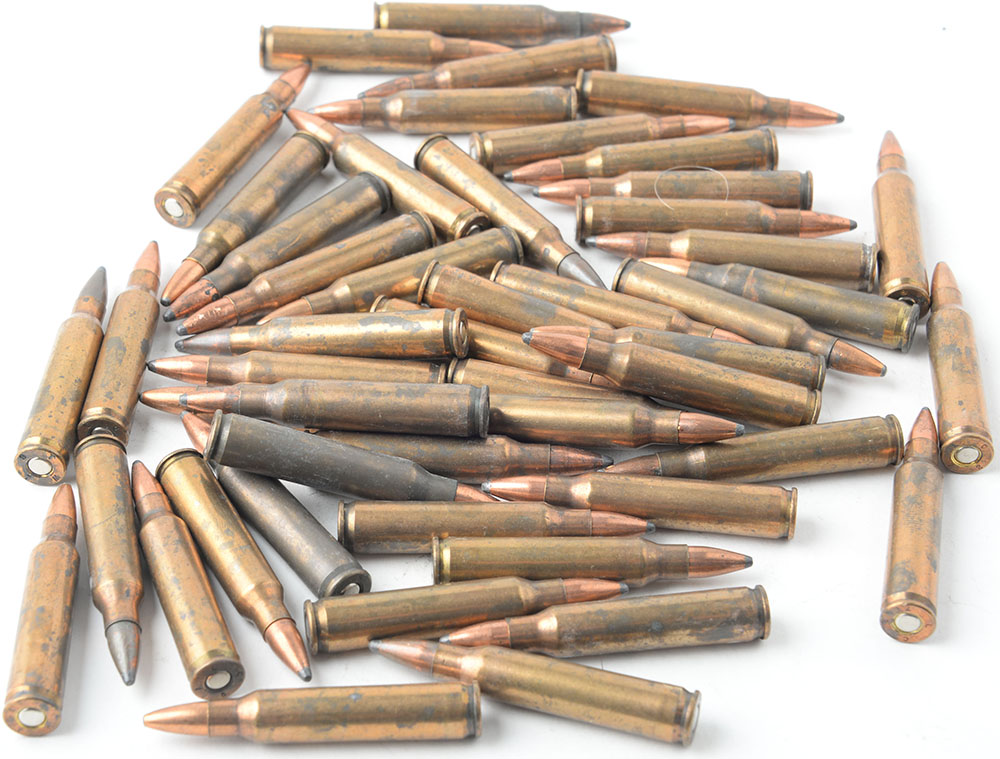 Lot of 50, .223 Remington. Various military headstamps, PT CJ SP. Probably reloads. Grade Very Good. - Value: 20 to 40
