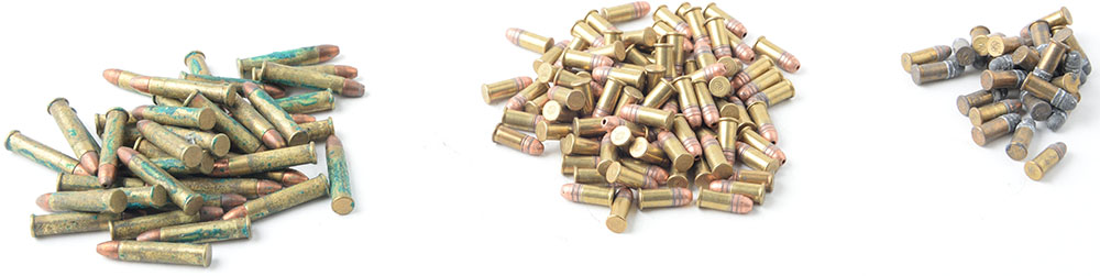 Mixed lot of .22 rimfire ammunition consisting of: (99) .22 Short Rimfire hollowpoints Fby CCI, (40) .22 Winchester Magnum, a mix of CCI & Winchester made FMJ cartridges, dirty & need cleaning. (29) .22 Short Rimfire by REM , HS:''U HI SPEED'', RN Lead. Grade Very Good - Value: 20 to 80