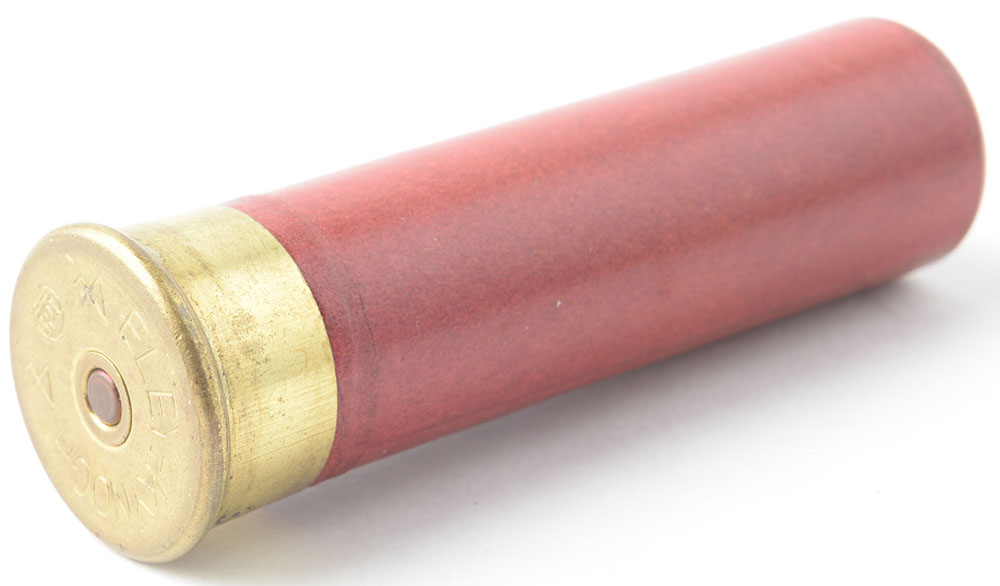 | ELEY-KYNOCH No. 4ga, 3 3/4'' OAL. Loaded red paper case with p...