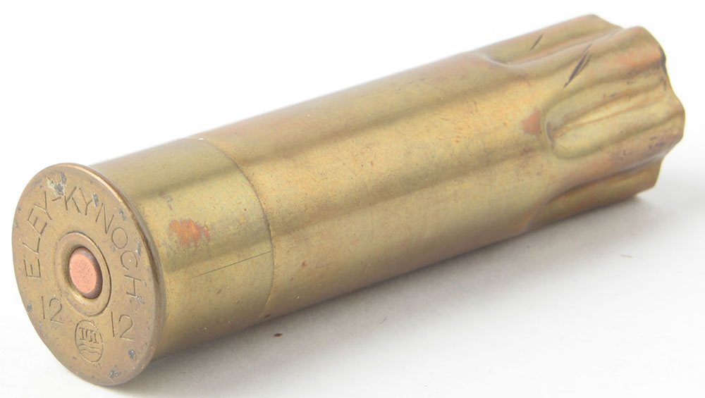 ELEY KNOCH 12ga, loaded brass, 3'' OAL. Grade: Very Good ++ - Value: 10 to 50