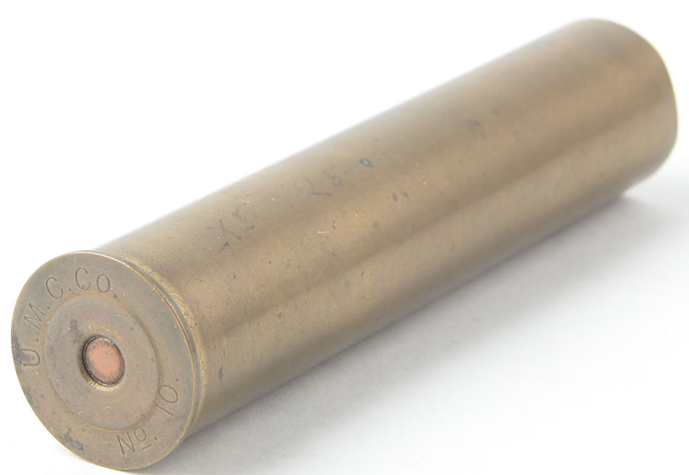 U.M.C.CO. 10ga brass shotshell, 4'' OAL. Grade: Very Good + - Value: 10 to 50