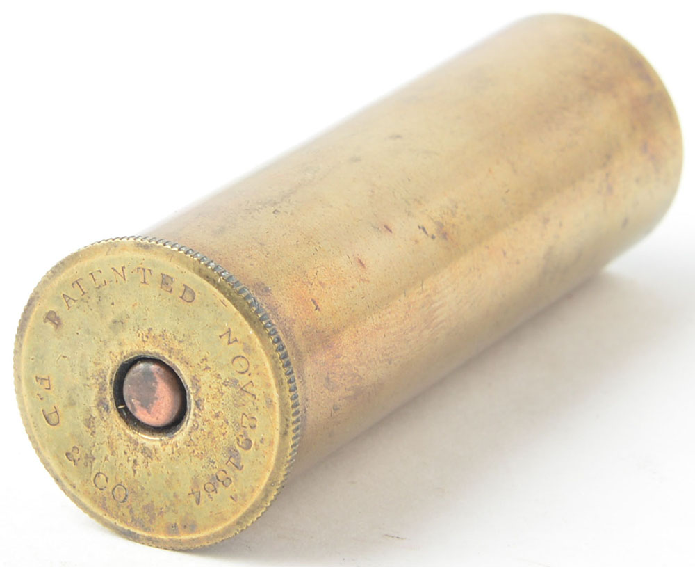 | F.D. & CO. Patented Nov. 1884, empty brass shotshell, 2 9/16'...