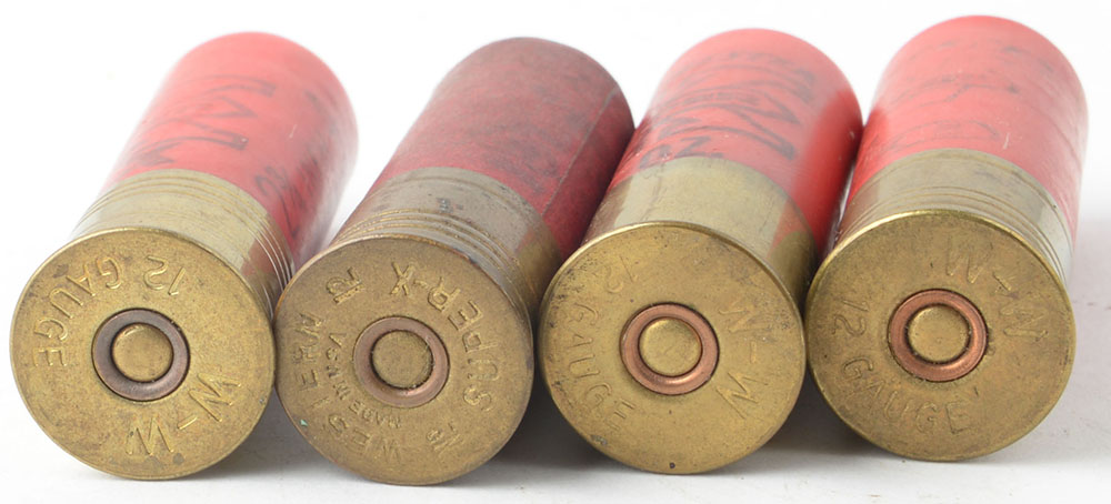 Lot of 4 W-W 12ga, loaded red paper cases, 2 5/16'' OAL. Grade: Very Good ++ - Value: 6 to 50
