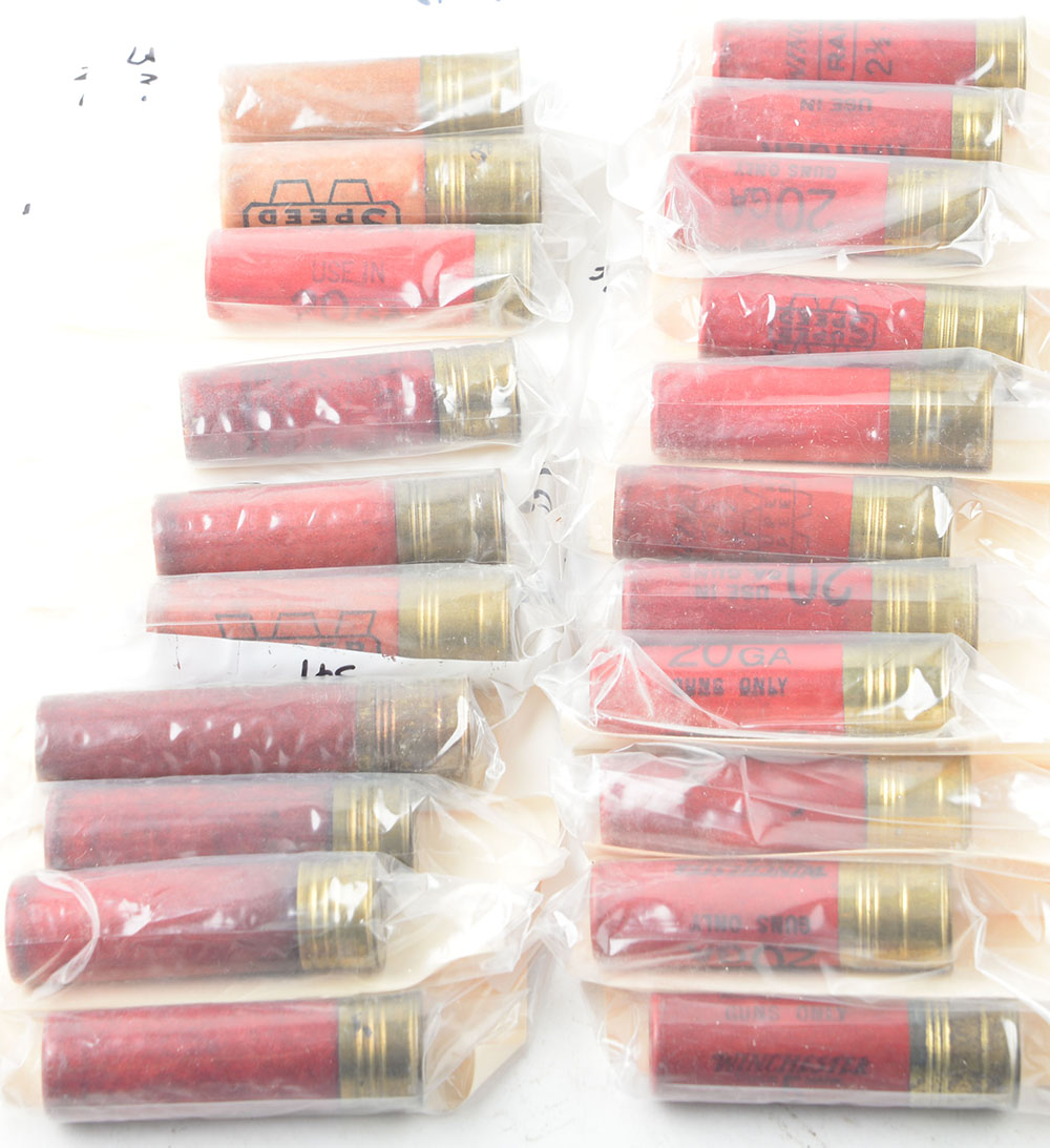 | Large lot of 20 Ga paper shotgun shells. Grade: Very Good + - ...