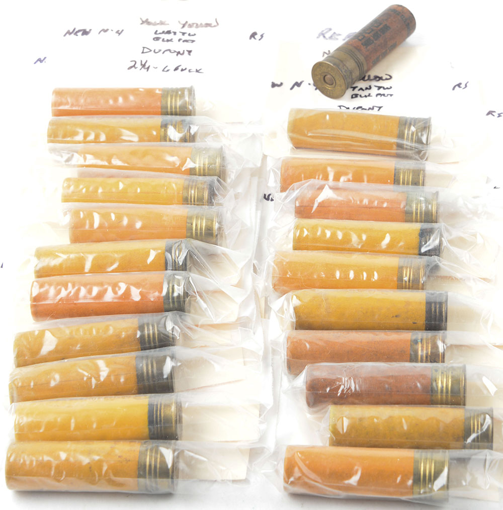 | Large lot of 20 Ga paper shotgun shells. Grade: Very Good + - ...
