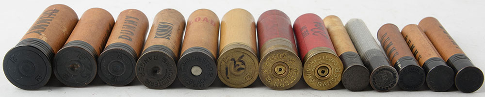 | Lot of 13, mixed gauges, paper shotgun shells. Grade: Very Good ...