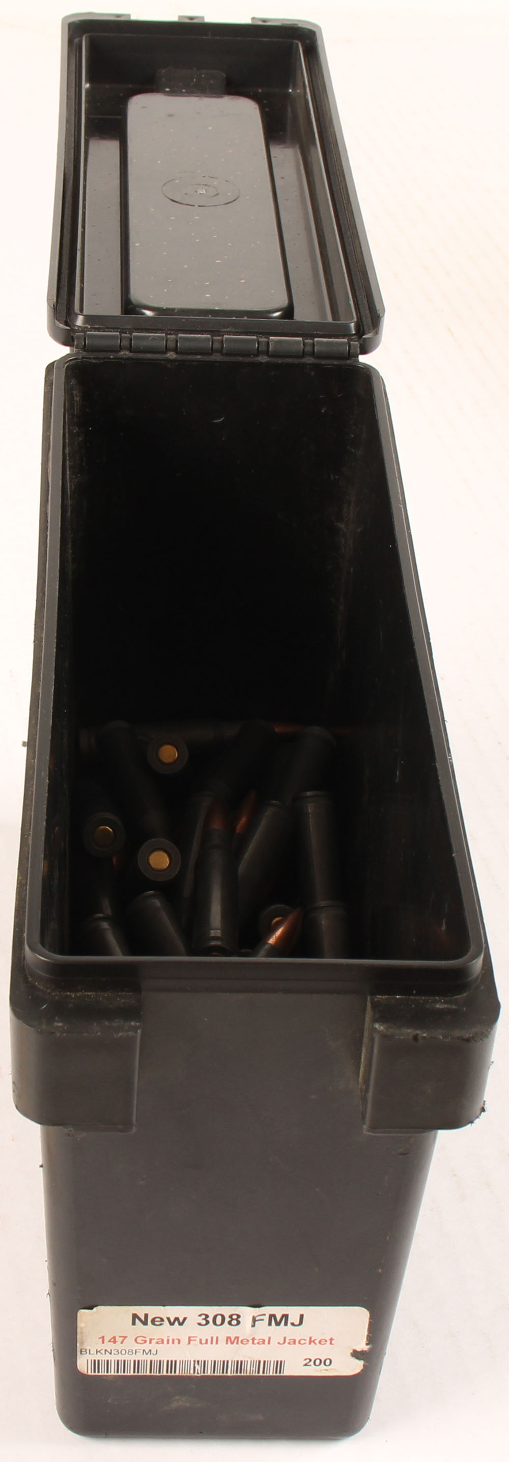 Plastic .30 Cal sized ammo can filled with Approx. 80 Rds. Of .308 Win, steel case Russian MFG, ammo is excellent. Grade: Excellent - Value: 40 to 80