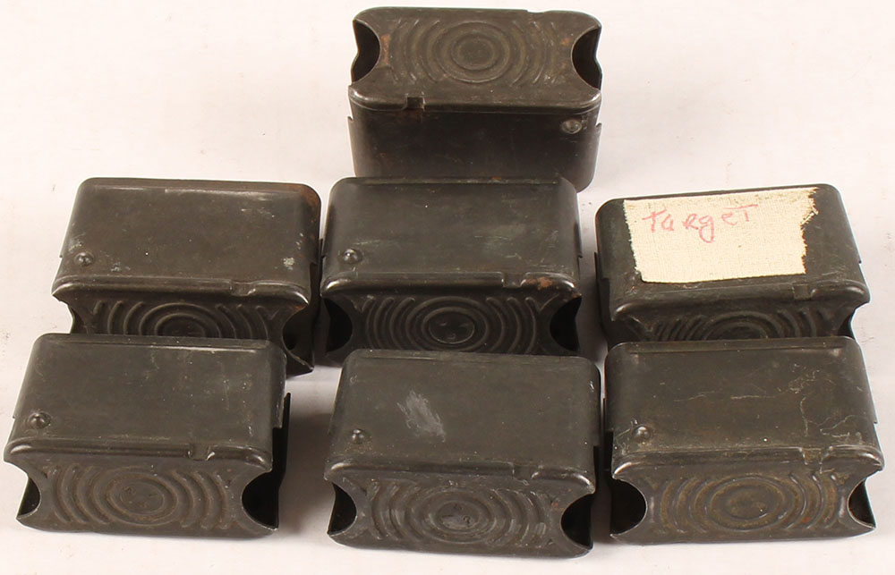 Lot of seven, M1 Garand En-block clips, some have tape marks & light rust. Grade: Very Good + - Value: 30 to 60