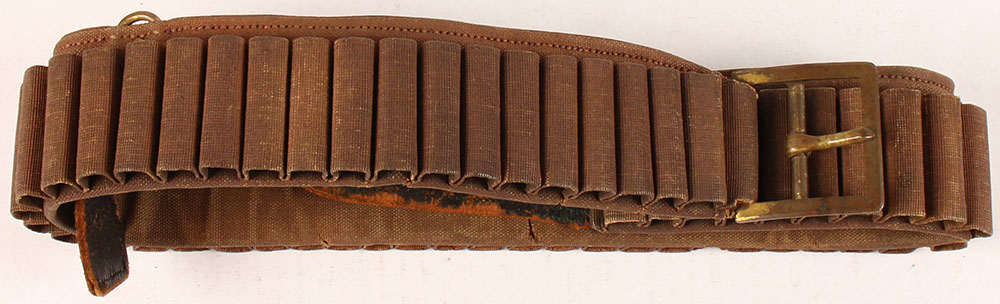 RARE!!, ORIGINAL, Model 1876 Prairie Belt with 1879 3 D ring update, 45-70 cartridge belt for cavalry, The 1876 Prairie belt had no provisions to attach a pistol holster, revolver cartridge box, hunting knife, saber and bayonet so soldier regularly modified theirs to accept them by sewing on different attachments. In 1879 3 D Rings were added to the belt to allow attachment of such things. The inside of the belt has a faded name marking, belt has a couple small tears & cuts but nothing major, all cartridge loops are intact, leather has some cracking from age & part of the seams are coming undone on the strap, the leather is dry but still malleable whole belt has a old sweat smell to it. The brass buckle has a dark patina that's polished away where the belt rubs the brass. Grade: Excellent - Value: 400 to 800