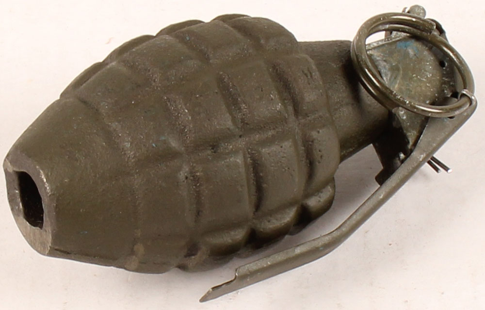 | US, Mk2 Pineapple de-milled training grenade, has blue spoon pai...