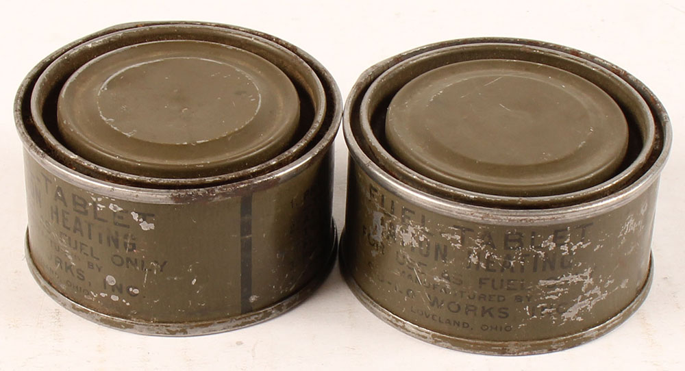 Lot of two, Loveland, Ration Heating Fuel Tabled, Sealed cans, has rub & scratch marks. Grade: Very Good - Value: 4 to 20