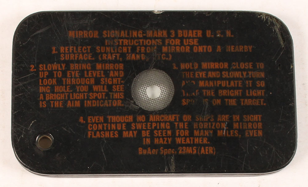 US, Signaling Mirror Mark 3 Bauer U.S.N., paint & label has some rub wear & fading Grade: Very Good + - Value: 10 to 30