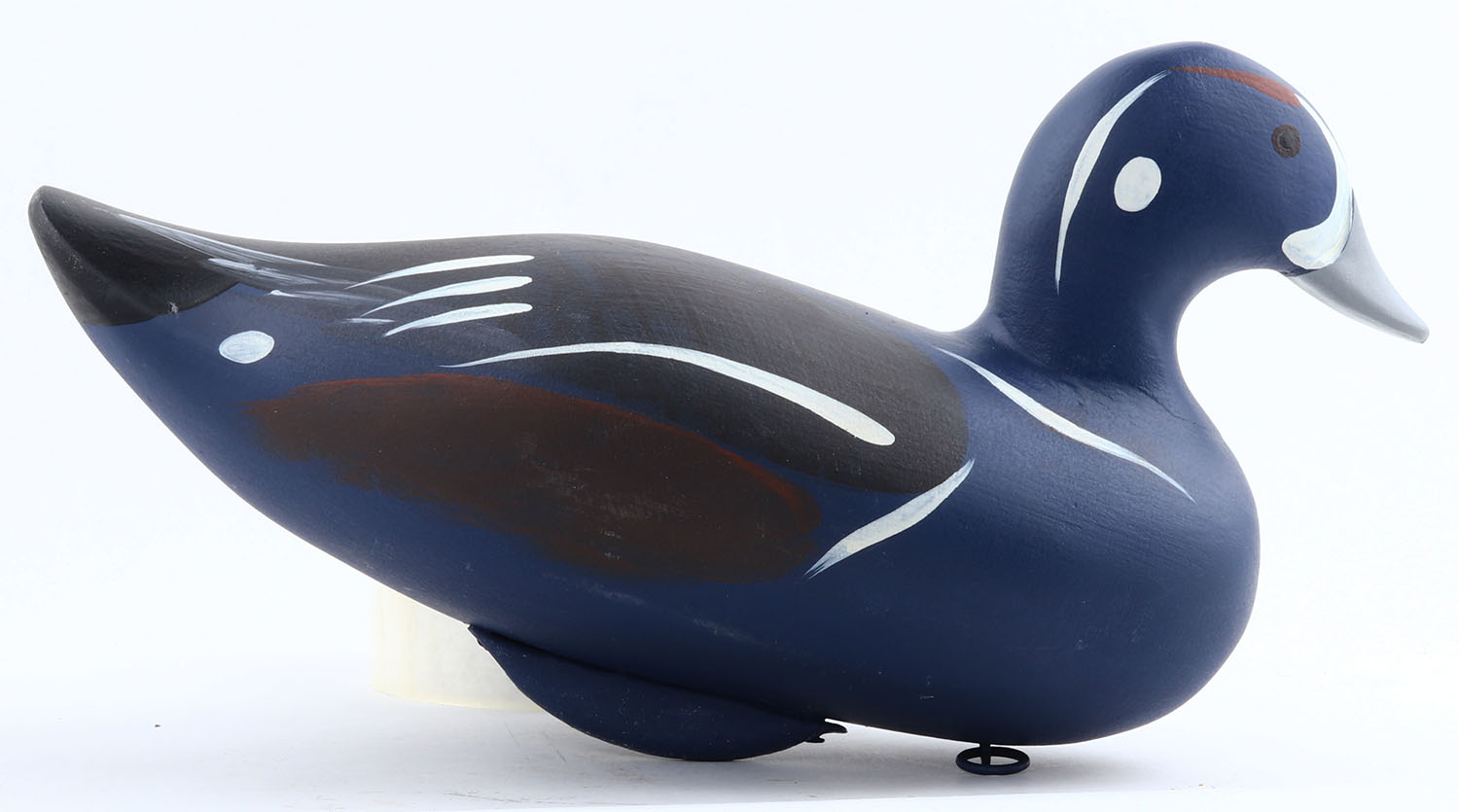 Harlequin Drake by Capt. Bob Jobes, Havre De Grace, MD , painted eyes, solid wood, original paint, signed on bottom by CAPT. BOB JOBES, structurally excellent, 14'' OAL. Grade: Excellent ++ - Value: 50 to 100