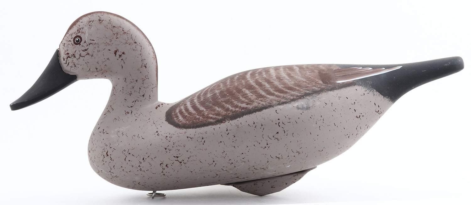 Gadwall Hen by Jeff Spencer from MD, PE, solid wood, original paint, branded on bottom, structurally excellent, 16 1/2'' OAL. Grade: Excellent ++ - Value: 40 to 80