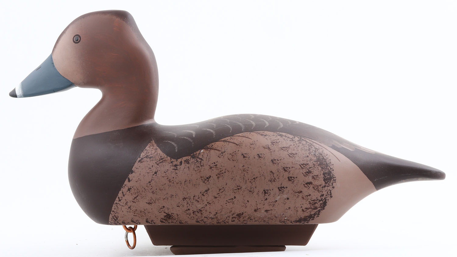 Bluebill Hen by Andy Zielinski, Chase, MD, painted eyes, solid wood, original paint, structurally excellent, signed on bottom, 15''. Grade: Excellent ++ - Value: 26 to 60