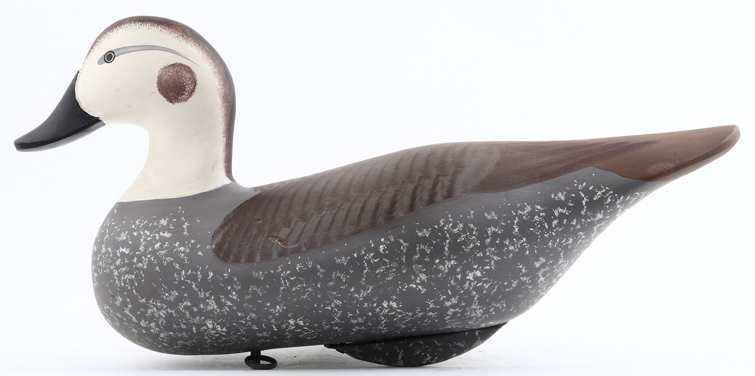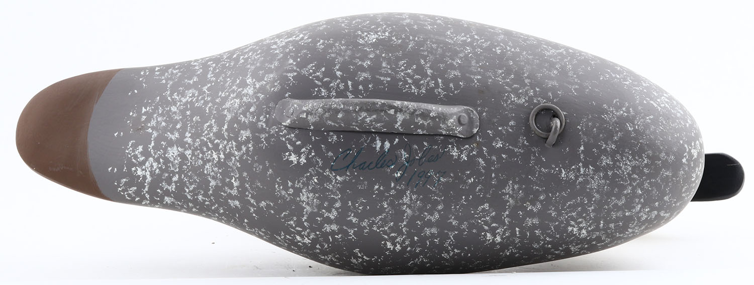 Old Squaw Hen by Charles Jobes, Havre De Grace, MD , painted eyes, solid wood, original paint, signed on bottom by CHARLES JOBES, structurally excellent, 15 1/2'' OAL. Grade: Excellent ++ - Value: 40 to 80