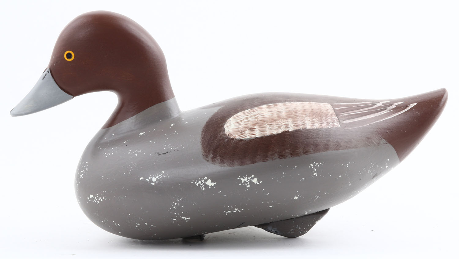 Goldeneye by Steven R Lay, Havre de Grace, MD, PE, solid wood, original paint, signed on bottom, 13'' OAL. Grade: Excellent + - Value: 30 to 60